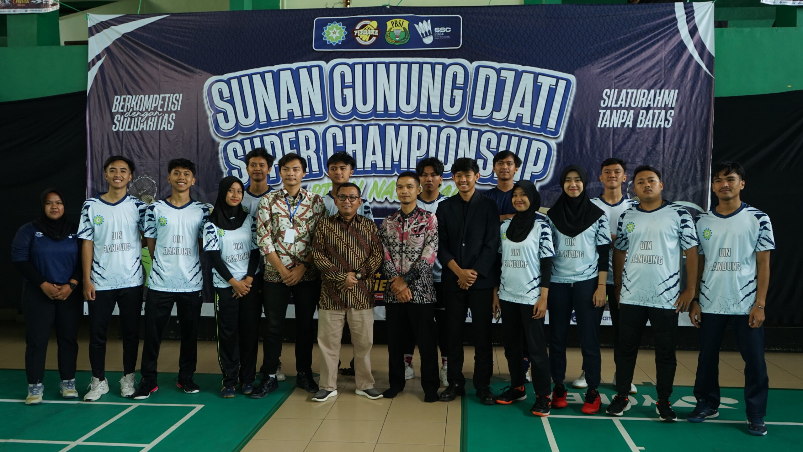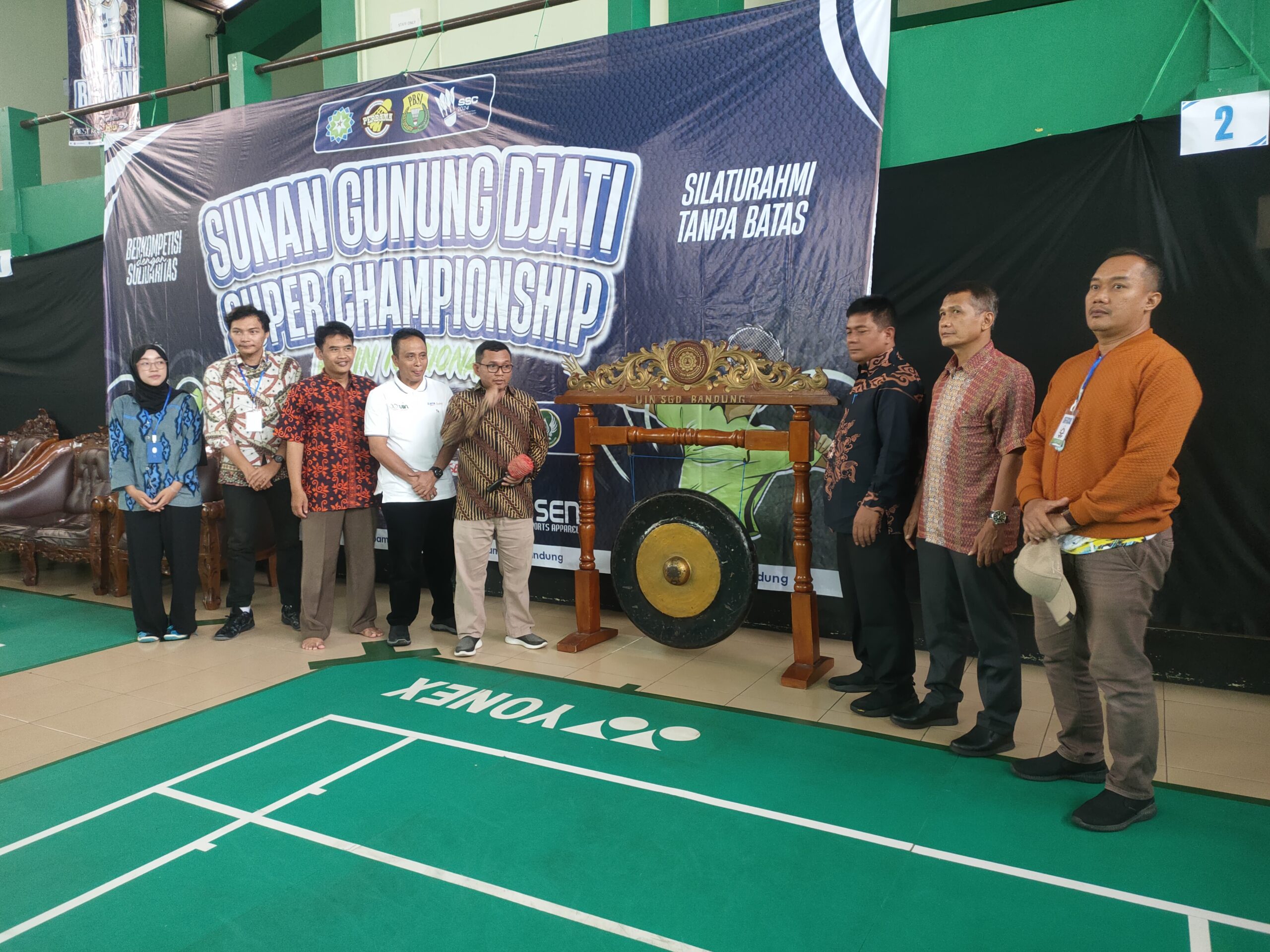 UINSGD.AC.ID (Humas) — Wakil Rektor III UIN Bandung, Prof Husnul Qodim didampingi oleh Ketua Tim Kerja Kemahasiswaan, H. Wawan Gunawan, MM, Pembina Unit Kegiatan Mahasiswa (UKM) Persatuan Badminton Mahasiswa (Perbama), Dr. H. Utang Rosidin, MH., Ketua Umum Perbama, Amiruddin Fakhrullah membuka secara resmi Sunan Gunung Djati Super Championship (SSC) Perguruan Tinggi Keagamaan Negeri (PTKIN) 2024 yang berlangsung di GOR kampus II, Rabu (4/12/2024).