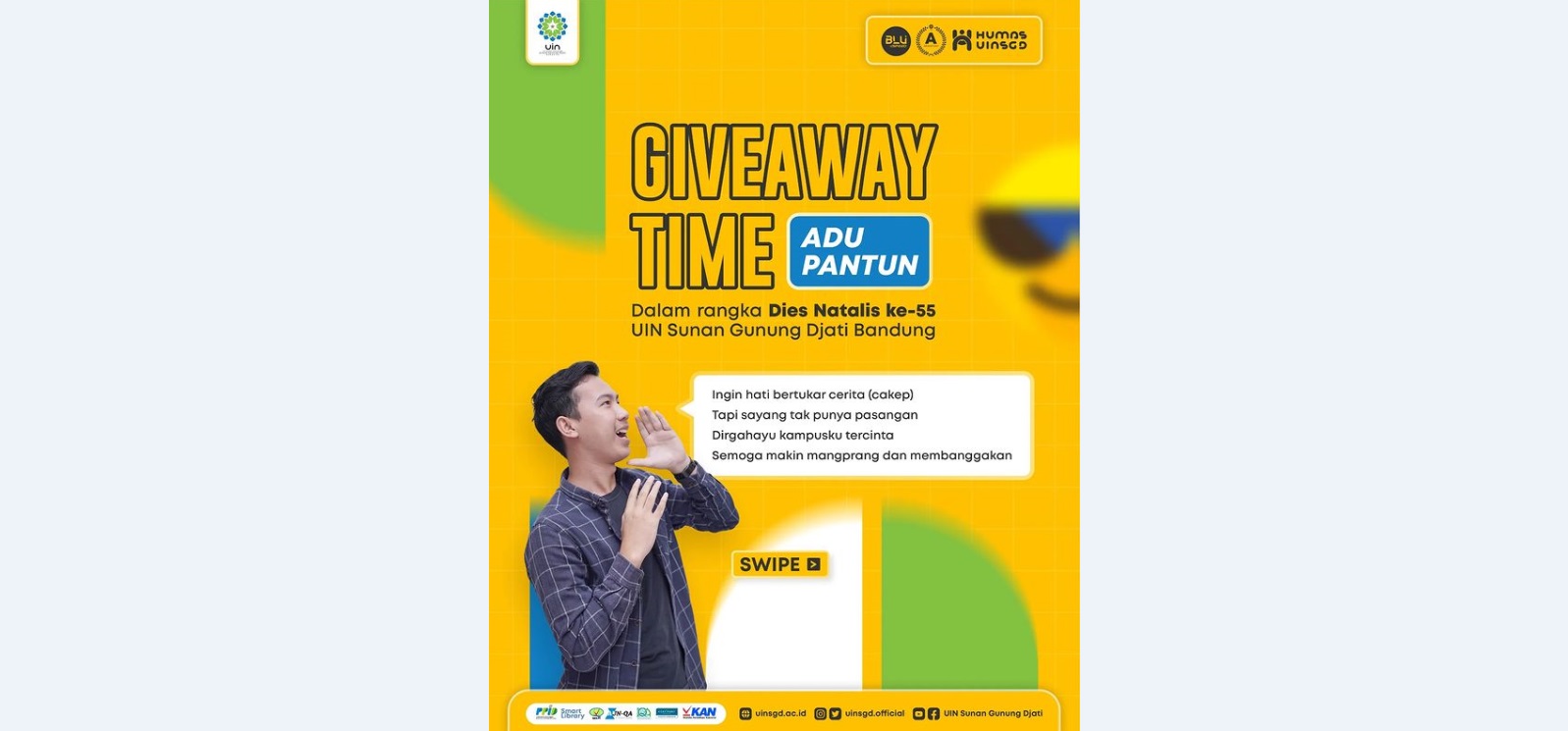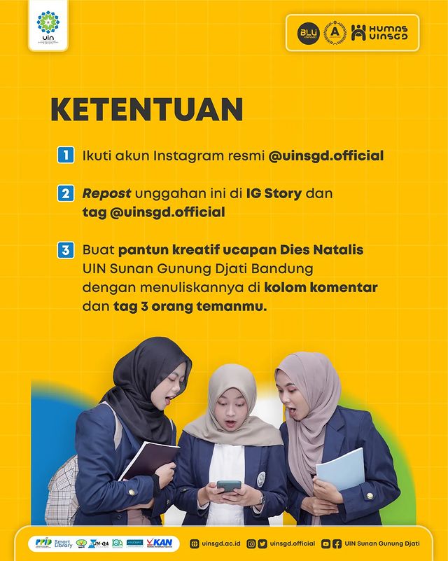 Btw, apa harapan kamu untuk kampus yang kita cintai ini? Balas pake pantun ya, guys! 3 pantun terkreatif Mimin kasih reward khusus edisi Dies Natalis kali ini. Ikuti syarat dan ketentuannya ya. 🤩