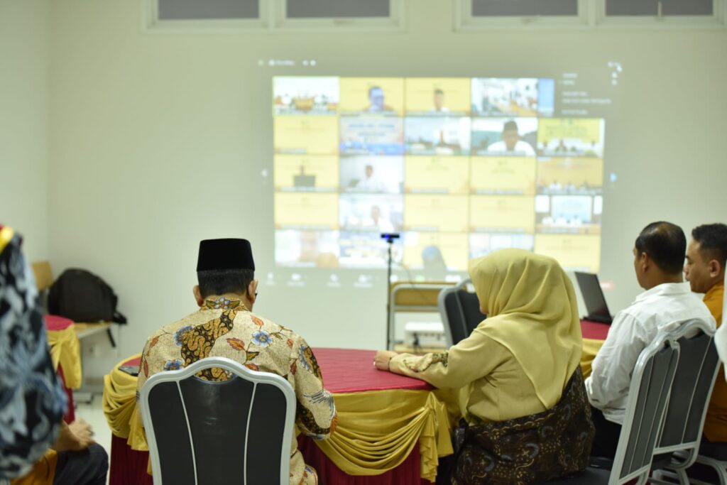 Wakil Menteri Agama RI Zainut Tauhid Sa’adi memonitor langsung melalui aplikasi zoom yang terhubung secara langsung dengan Panitia Lokal SSE UM PTKIN se- Indonesia, Senin (29/5/2023).