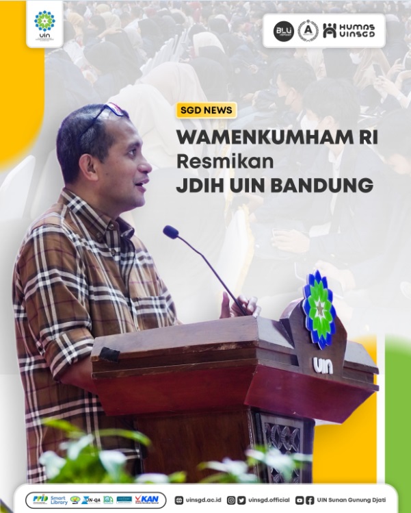 Launching Jaringan Dokumentasi dan Informasi Hukum UIN Sunan Gunung Djati Bandung, yang menobatkan sebagai kampus pertama di lingkungan Perguruan Tinggi Keagamaan Islam Negeri yang terintegrasi dengan Jaringan Dokumentasi dan Informasi Hukum Nasional (JDIHN) yang terpusat di Badan Pembinaan Hukum Nasional (BPHN) Kementerian Hukum dan HAM RI.