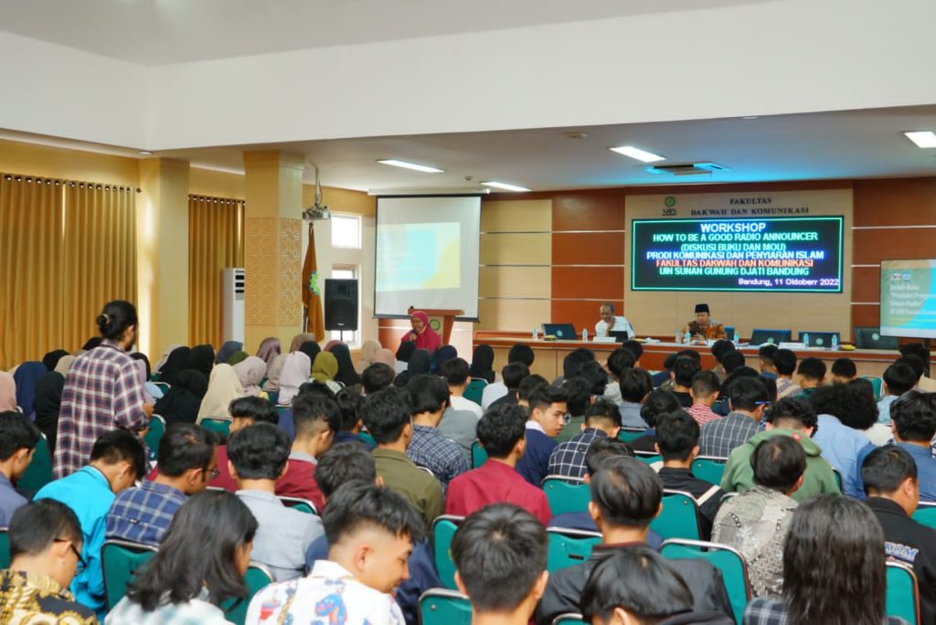 Dengan mengambil tema “How To Be A Good Radio Announcer”, workshop menghadirkan Dr. Amarwati Arbi, M.Si (Kaprodi KPI UIN Jakarta dan Penulis Buku Produksi Program Siaran Radio) dan M. Sudama Dipawikarta, S.Sos., M.Ag (Komisioner KPID Provinsi Jawa Barat). Dilaksanakan di Aula FDK Lantai 4 dan diikuti oleh sekitar 500 orang mahasiswa di lingkungan Prodi KPI, Selasa (11/10/2022)