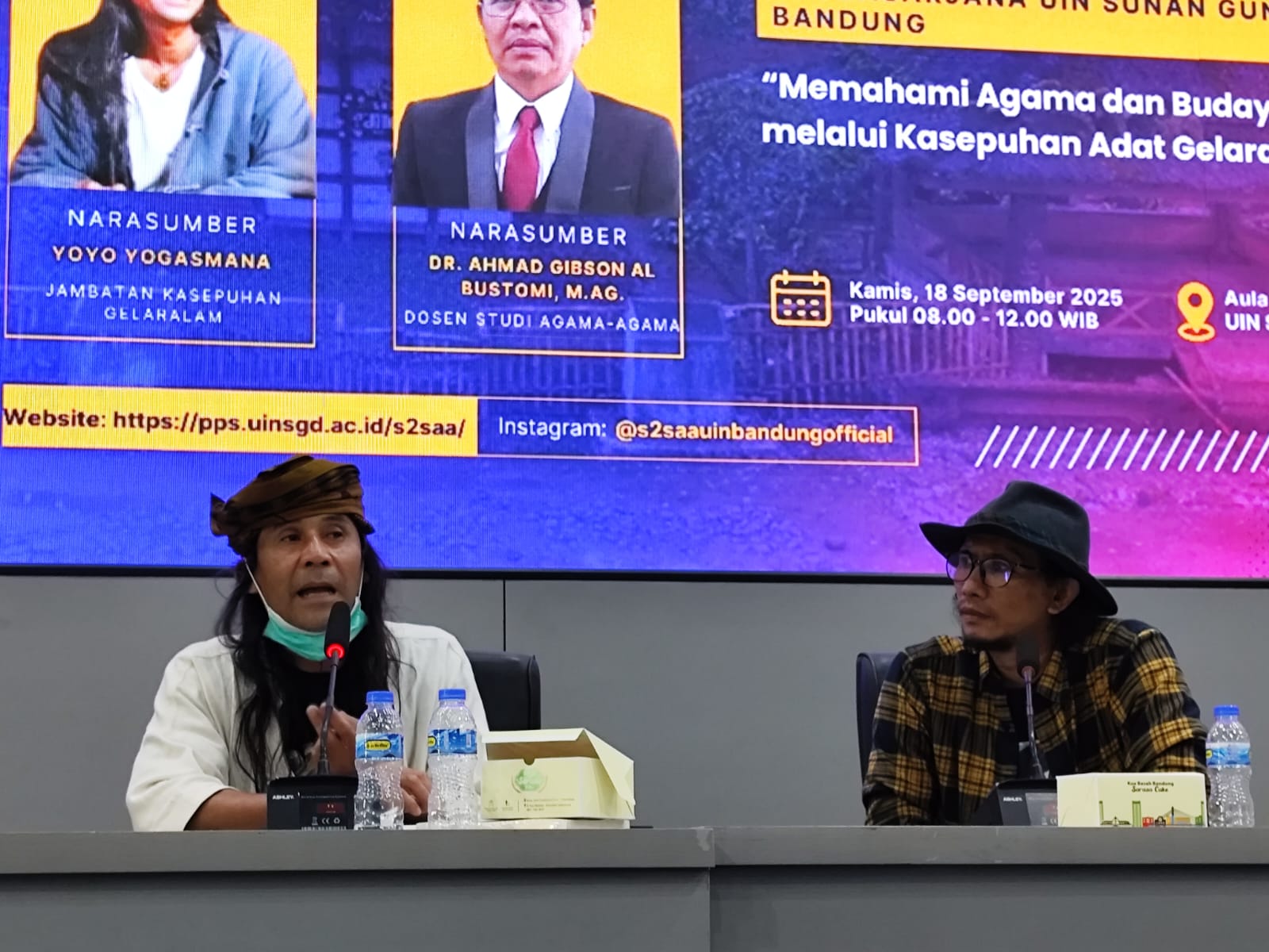 Dengan menghadirkan dua narasumber utama, yakni Yoyo Yogasmana, perwakilan Jembatan Kasepuhan Gelaralam Sukabumi, dan Dr. Ahmad Gibson Al Busthomi, M.Ag., dosen Studi Agama-Agama Pascasarjana UIN Bandung.
