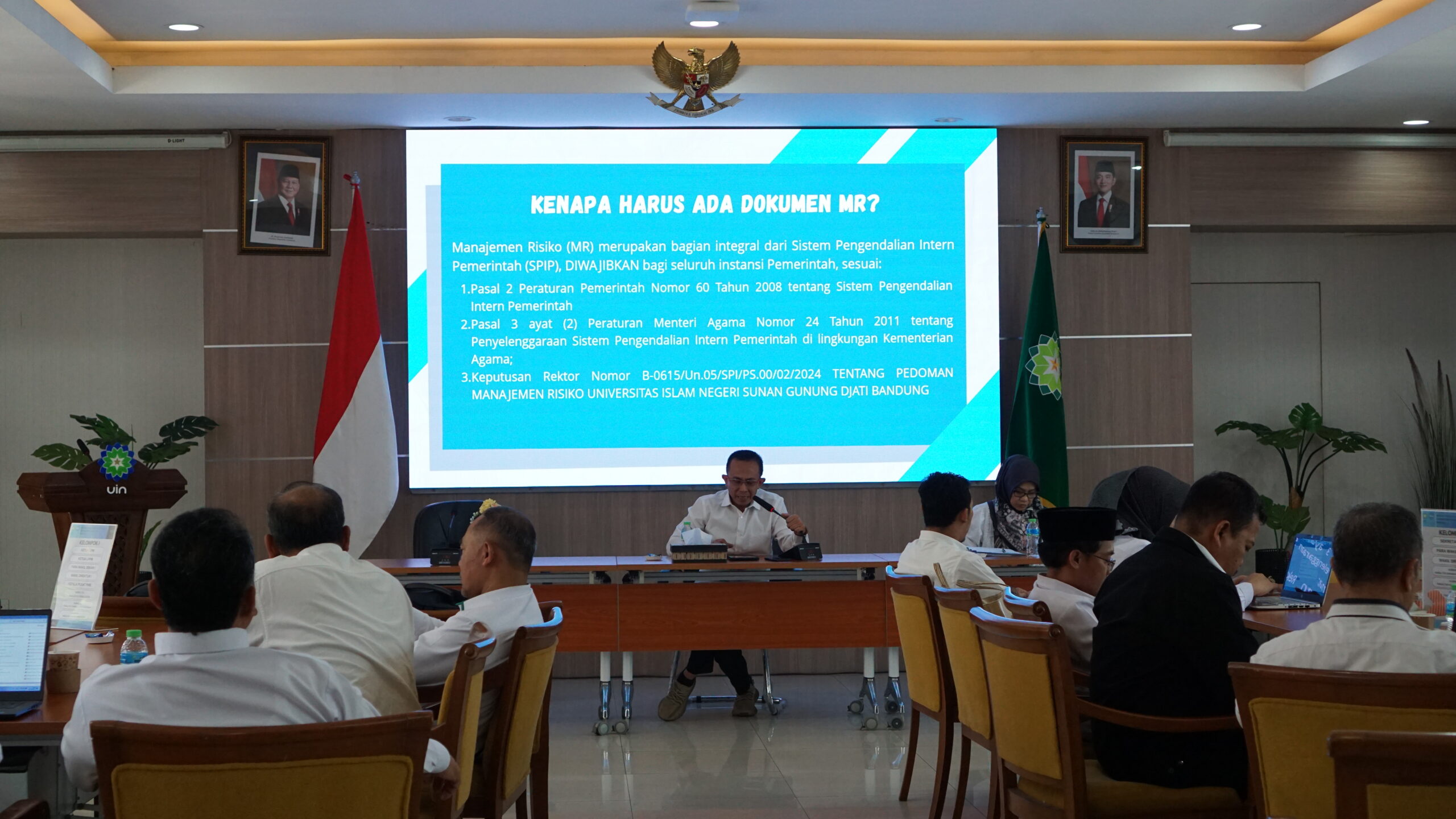 Workshop ini dilaksanakan sebagai bagian dari pelaksanaan Peraturan Pemerintah Nomor 60 tahun 2008 tentang Sistem Pengendalian Intern Pemerintah (SPIP) dan Keputusan Menteri Agama Nomor 580 tahun 2019 tentang Pedoman Pelaksanaan Sistem Pengendalian Intern Pemerintah (SPIP) pada Kementerian Agama yang kemudian ditindaklanjuti dengan Keputusan Rektor Nomor 012/Un.05/II.2/KP.07.6/02/2024 tentang Pedoman Manajemen Risiko UIN Sunan Gunung Djati Bandung.