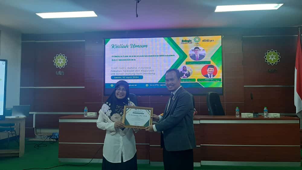 UINSGD.AC.ID (Kampus II) — Upaya mewujudkan kampus yang unggul, kompetitif dan moderat, Program Studi Tadris Bahasa Indonesia (TBI) Fakultas Tarbiyah dan Keguruan (FTK) UIN Sunan Gunung Djati Bandung menggelar Kuliah Umum Penguatan Wawasan Moderasi Beragama bagi Mahasiswa di Aula FTK, Senin (22/4/2024).
