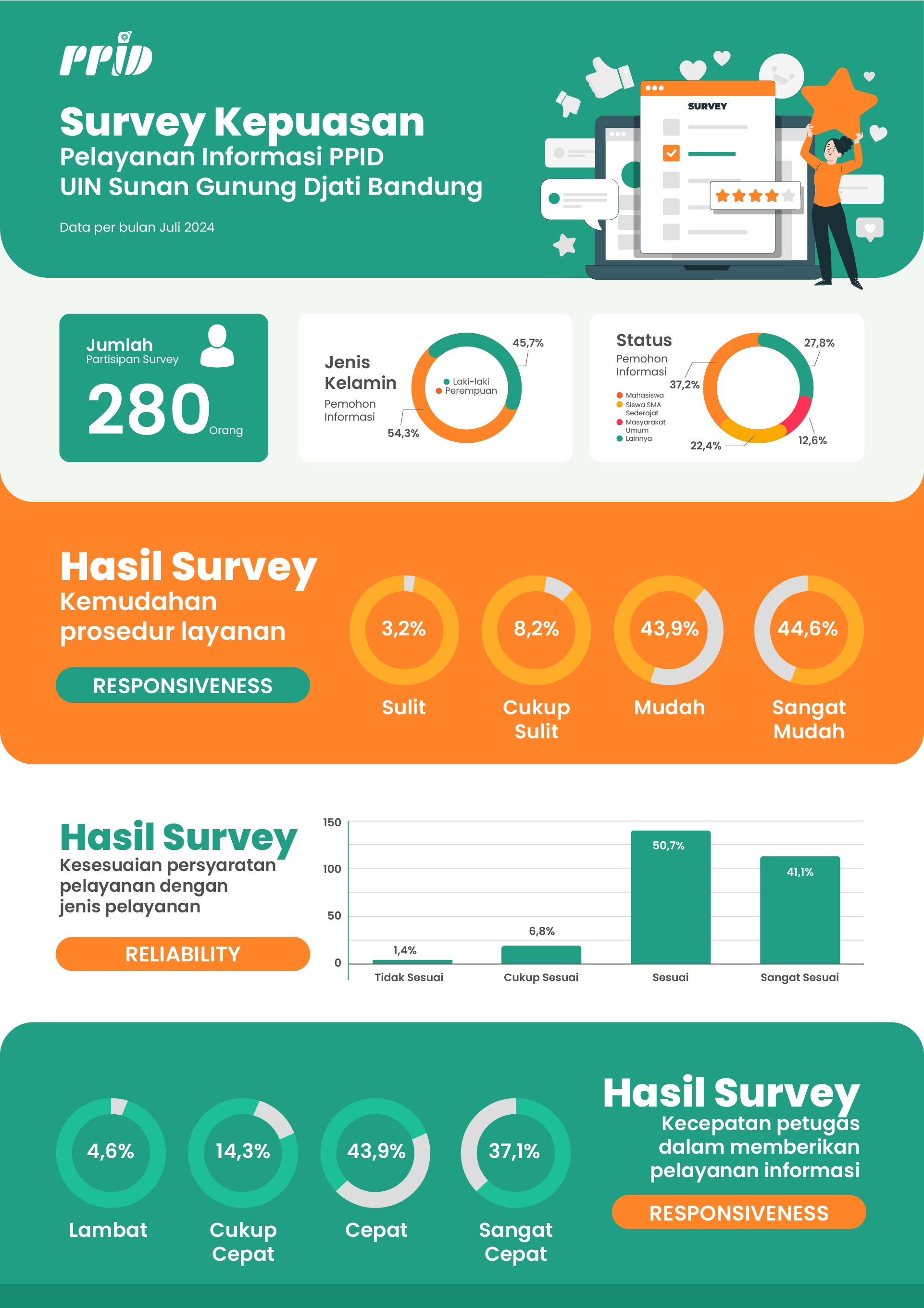 Berikut ini hasil survei kepuasan pelayanan informasi publik PPID UIN Sunan Gunung Djati Bandung: