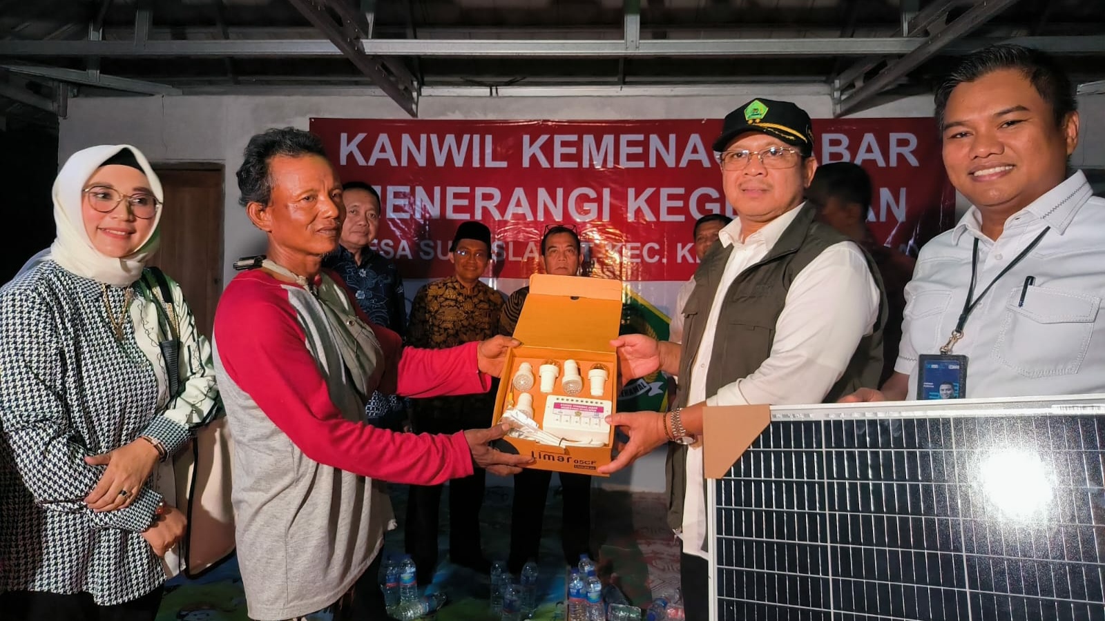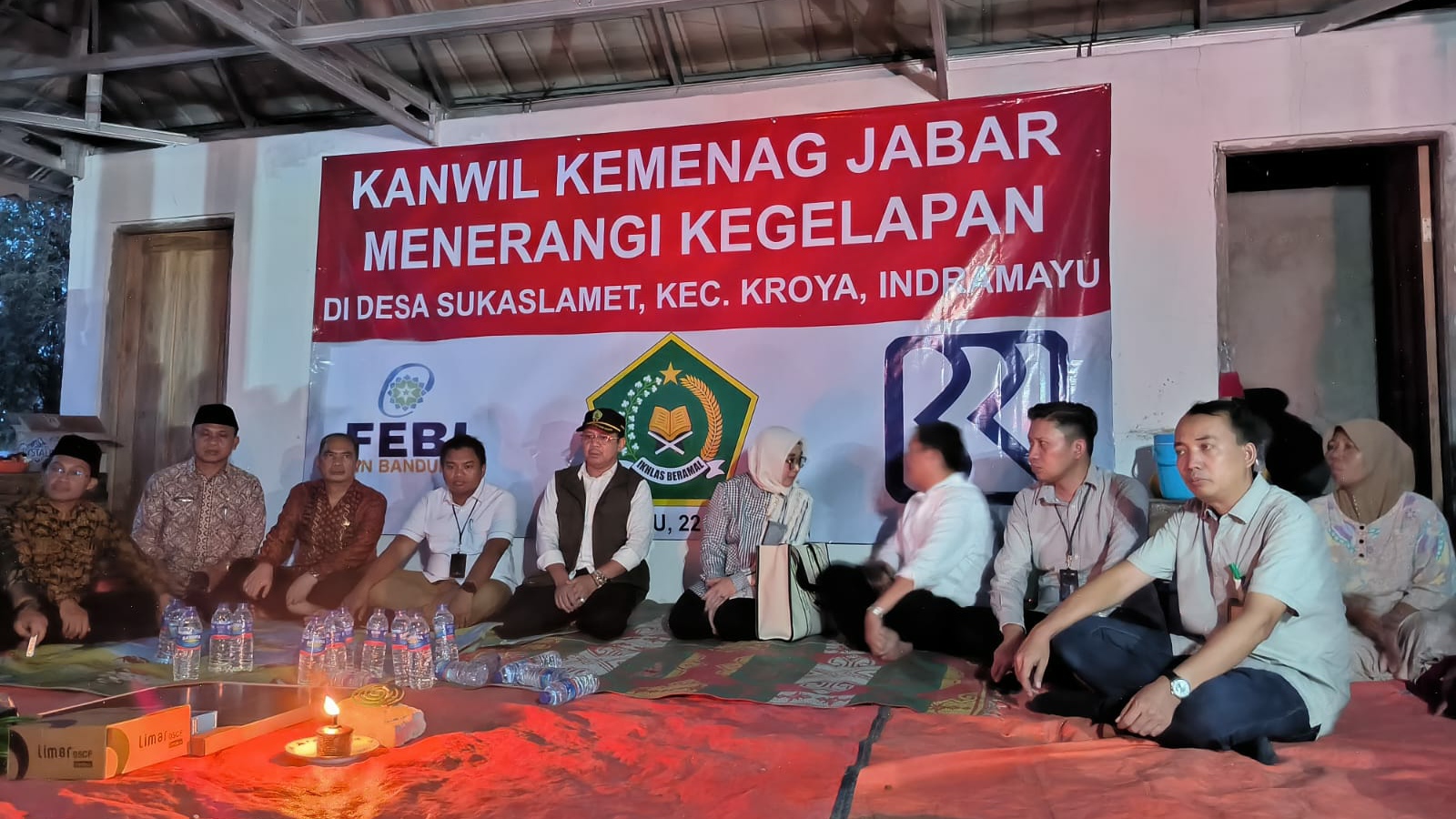 UINSGD.AC.ID (Humas) — Kantor Wilayah Kementerian Agama Provinsi Jawa Barat berkolaborasi dengan Fakultas Ekonomi dan Bisnis Islam (FEBI) UIN Sunan Gunung Djati Bandung beserta Bank Rakyat Indonesia (BRI) memberikan bantuan akses penerangan listrik kepada masyarakat Desa Suka Slamet Kecamatan Kroya, Kabupaten Indramayu, melalui program “Kanwil Kemenag Jabar Menerangi Kegelapan”.