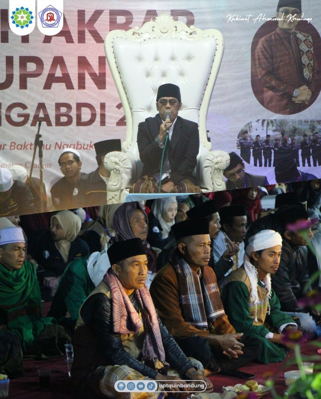 “Saya apresiasi pada kegiatan UPTQ Mengabdi, Pertama, karena kita menanamkan tanggubgjawab kepada pengurus dan anggota UPTQ untuk ikut serta mensosialisasikan cara membaca Al-Quran yang benar. Kedua, ikut mensosialisasikan UIN Bandung di tengah masyarakat. Ketiga, ikut membangun budaya cinta Al-Quran. Keempat, kegitan itu sangat baik bagi mahasiswa dalam rangka mengisi libur panjang dengan kegiatan yang sangat bermanfaat,” jelasnya.