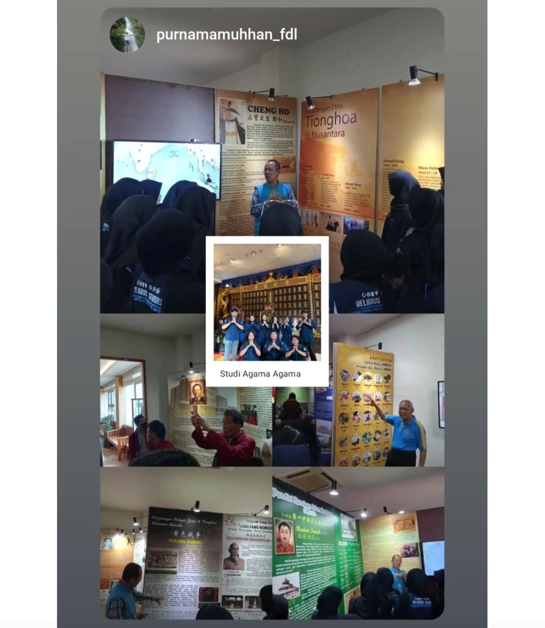 Saat belajar di Museum Tionghoa Bandung, mahasiswa mengajukan sejumlah pertanyaan seputar: peran tokoh Muslim dalam sejarah Tionghoa di Indonesia, akulturasi budaya Tionghoa, Nusantara, figur Wali Songo yang memiliki jejak etnis Tionghoa, budaya perdagangan Tionghoa, hubungan hari raya Tionghoa dengan tradisi agama, serta asal-usul banyaknya kosakata serapan dari bahasa Tionghoa dan bahasa asing lainnya.