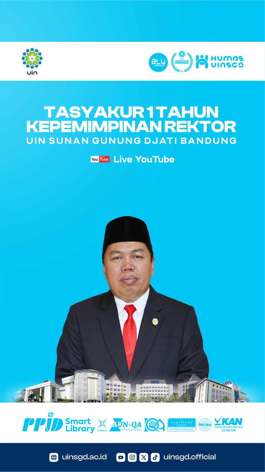 Yuk saksikan kilas balik 1 tahun kepemimpinan Rektor UIN Sunan Gunung Djati Bandung, Prof. Dr. H. Rosihon Anwar, M.Ag., pada hari Senin (19/8/2024) pukul 09.00 WIB yang disiarkan langsung melalui kanal YouTube ini